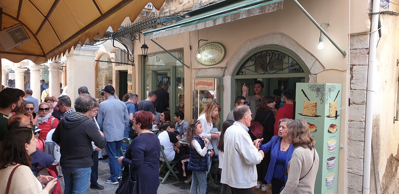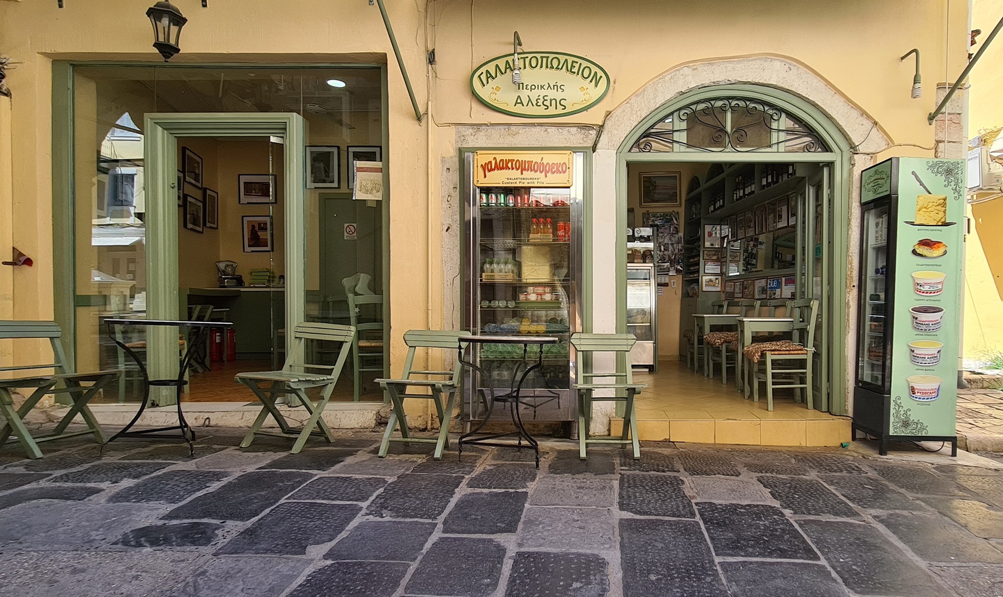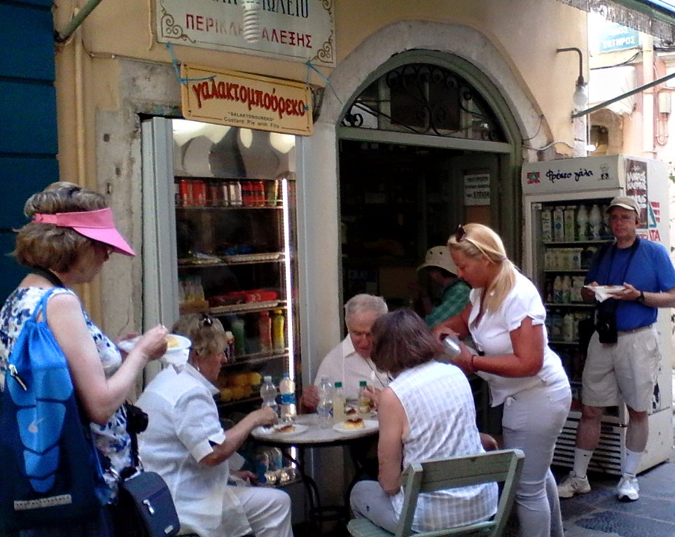Korfu (Kerkyros – taip vadina salą vietiniai) vienoje iš senamiesčio gatvių rasite nedidelę gal kokių 9 kvadratinių metrų parduotuvėlę, per dvi sales, su keliais staliukais lauke. Dar mes ją vadiname Alexis parduotuve, arba Alexis Periklis. Sustojame sviesto, ryžių pudingo, o dar dažniau galaktoboureko.