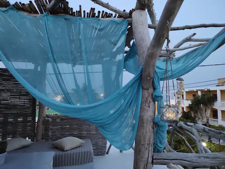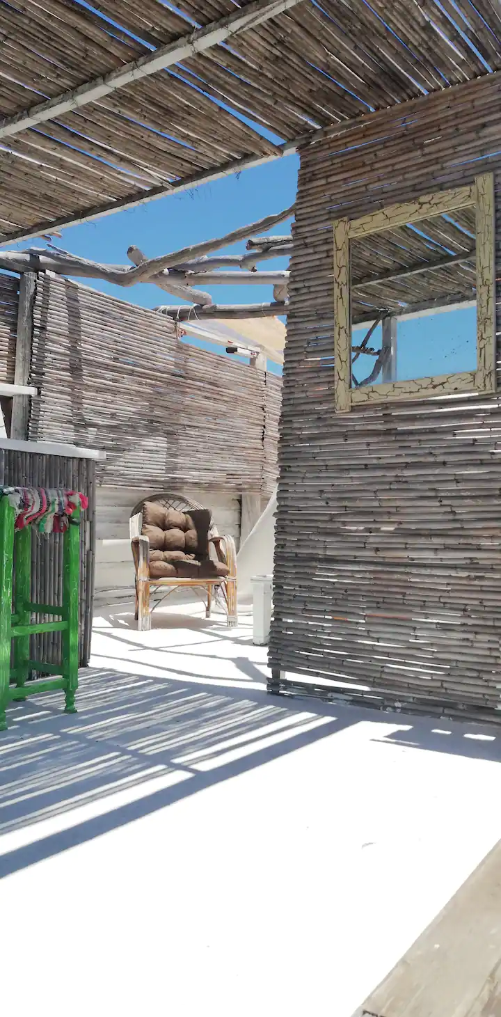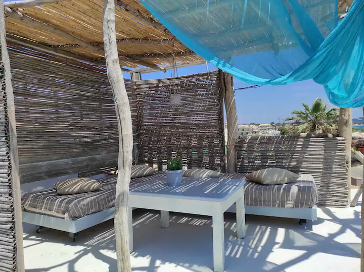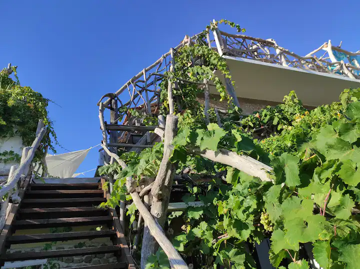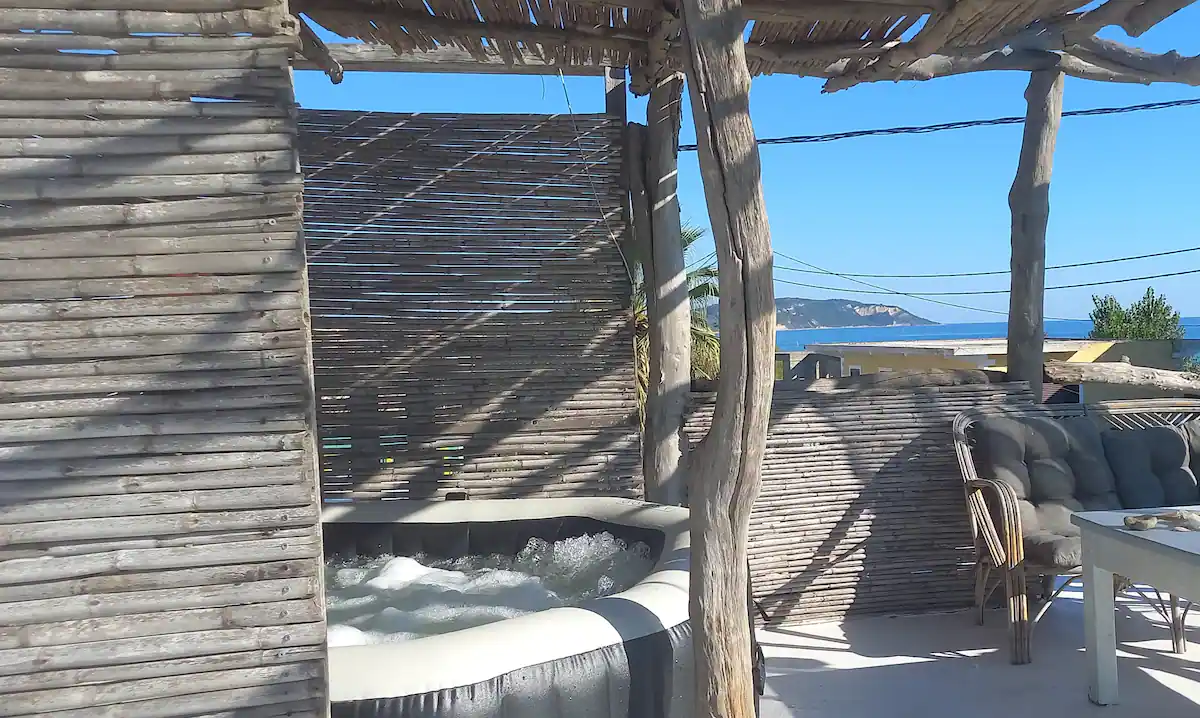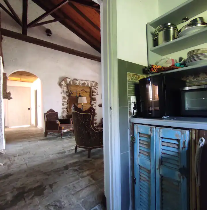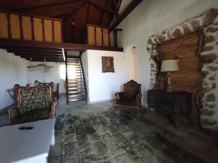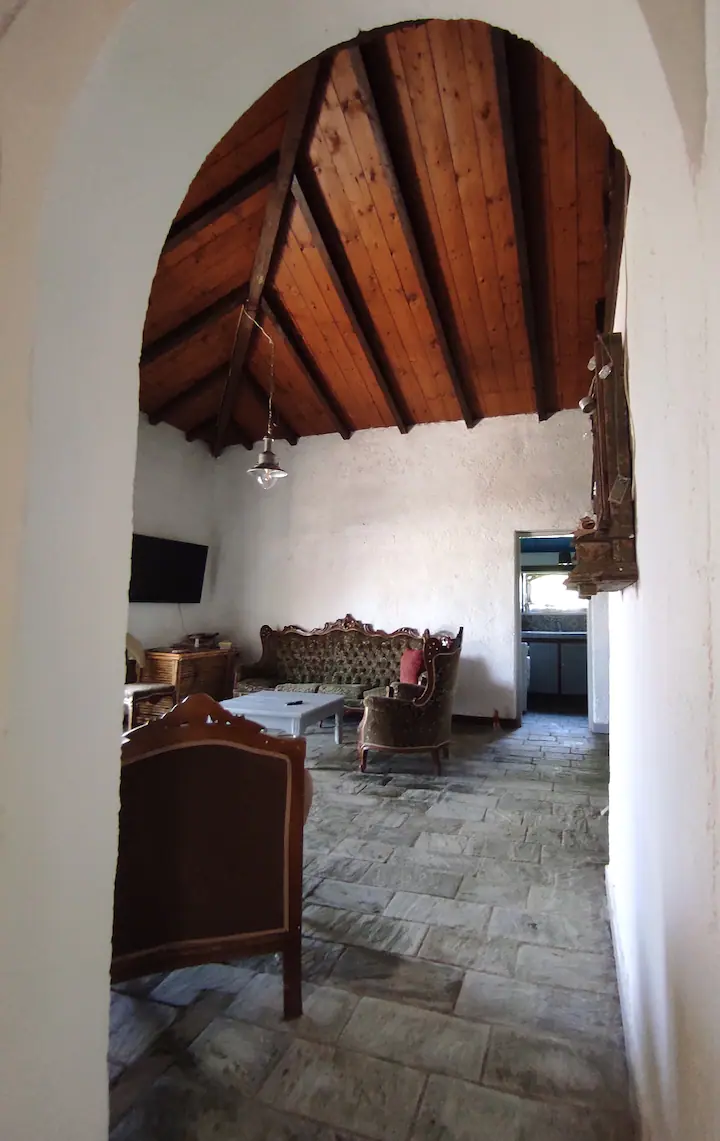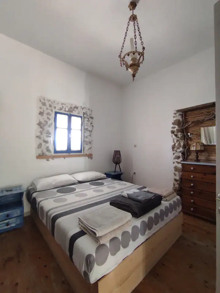 Pirmame aukšte yra 2 miegamieji, salonas su virtuve, antrame aukšte, į kurį užlipama laiptais, yra dar du kambariai. Yra terasa, iš kurios atsiveria vaizdas į jūrą.